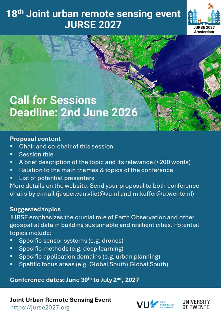 “The biennial international Joint Urban Remote Sensing Event (JURSE) is a forum of excellence where researchers, practitioners and students present, share and discuss their latest findings and results on urban areas. Both, methodical as well as thematic aspects will be discussed. The aim of the conference is to promote new topics, from new sensors to new applications.”